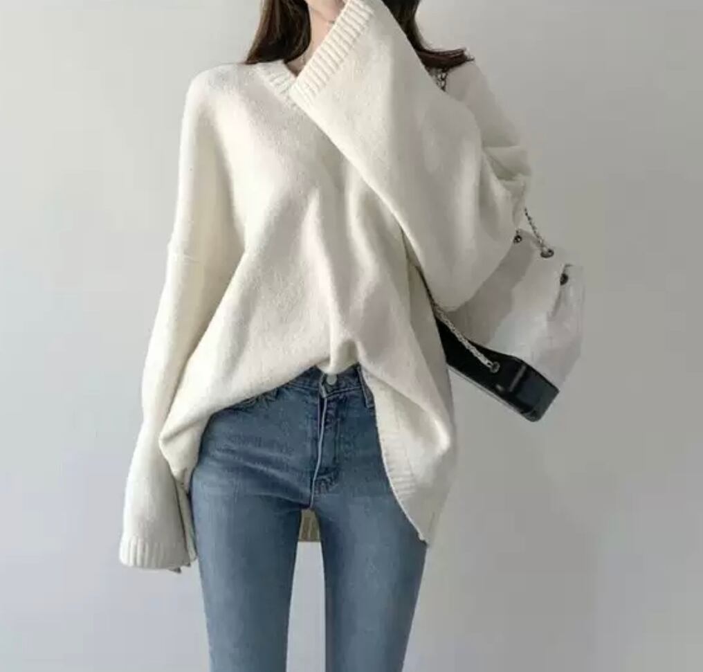 Vネックが目を惹くゆったりビッグシルエットニット。