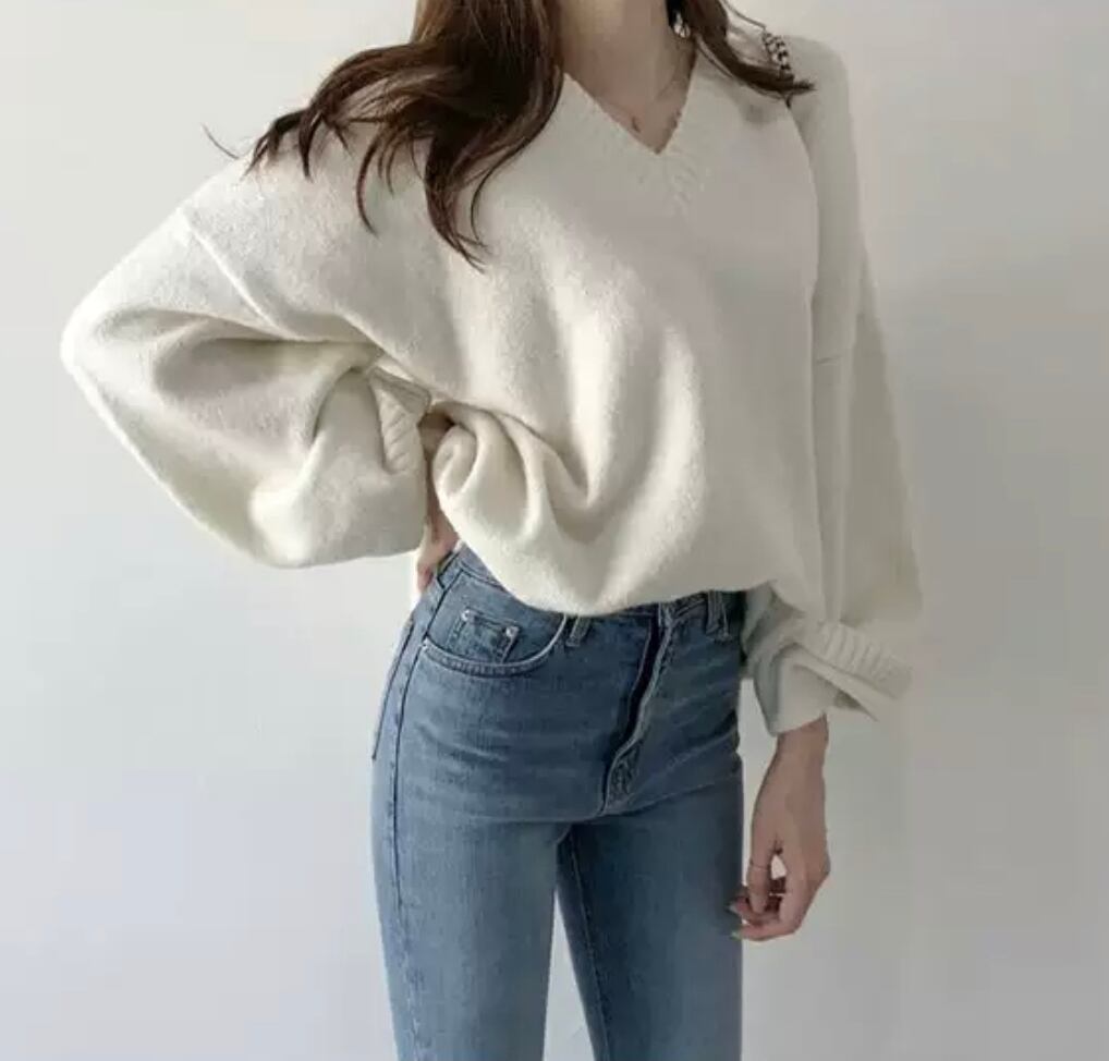 送料無料 ニットセーター 韓国 ゆったり セーター 袖あり 長袖 フレアスリーブ ドロップショルダー 萌袖 Vネック Iライン もこもこ モコモコ ふわふわ リブ 綿 ニット アクリル かわいい 大人可愛い きれいめ シンプル カジュアル 上品 おしゃれ お洒落 かっこいい 大人女子