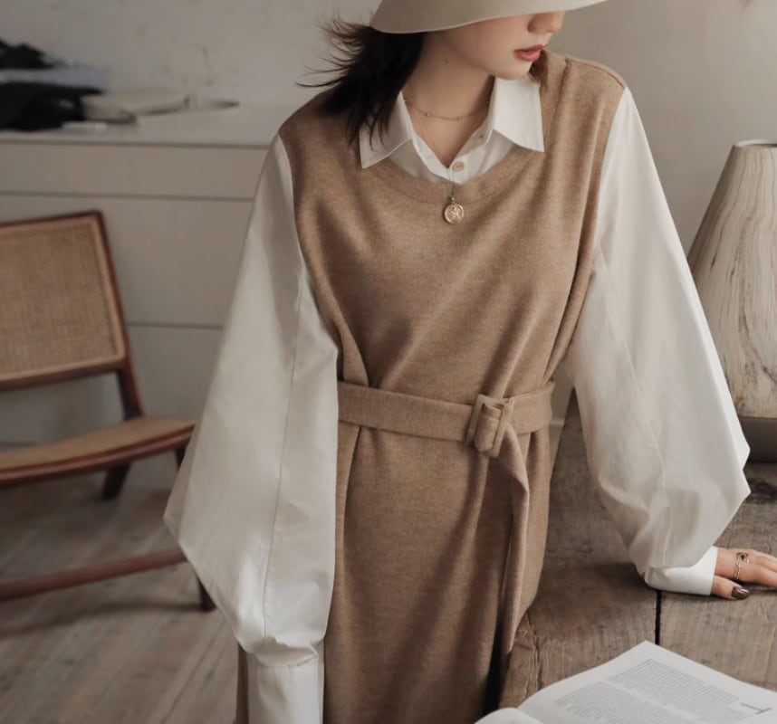 ミディ丈で膝が隠れ、袖ありで肩や二の腕をカバーしてくれるから、体型カバーにもぴったりです。