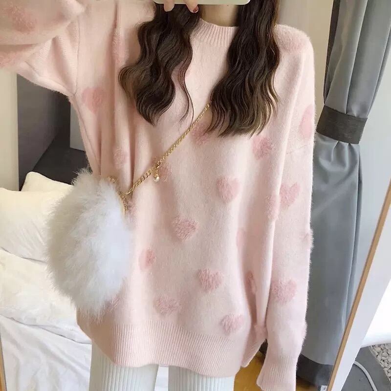 送料無料 トップス セーター レギュラー丈 袖あり 長袖 ラウンドネック 襟なし もこもこ プルオーバー ニット 厚手 大人可愛い きれいめ カジュアル 大人 上品 おしゃれ レトロ 大人女子 こなれ感 ラフ ラブリー キュート ガーリー とろみ感 抜け感 ハート 秋 冬 10代 20代