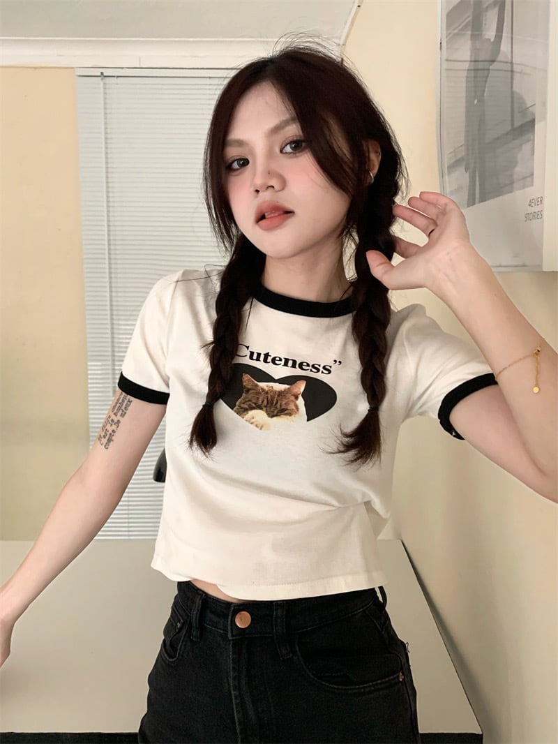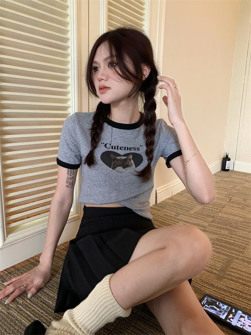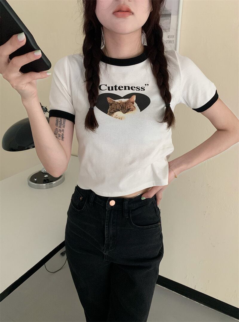 猫のプリントがとっても可愛い半袖Tシャツ。薄手の素材で大人可愛い印象を与える一枚。シンプルでありながらカジュアルにもきれいめにも合わせられ、上品でおしゃれな印象を与えます。夏にぴったりの季節感があり、休日のお出かけや女子会、デートなどいろいろなシーンで主役級の存在感を放ち、とろみ感、抜け感、こなれ感を出してくれるトップスです。