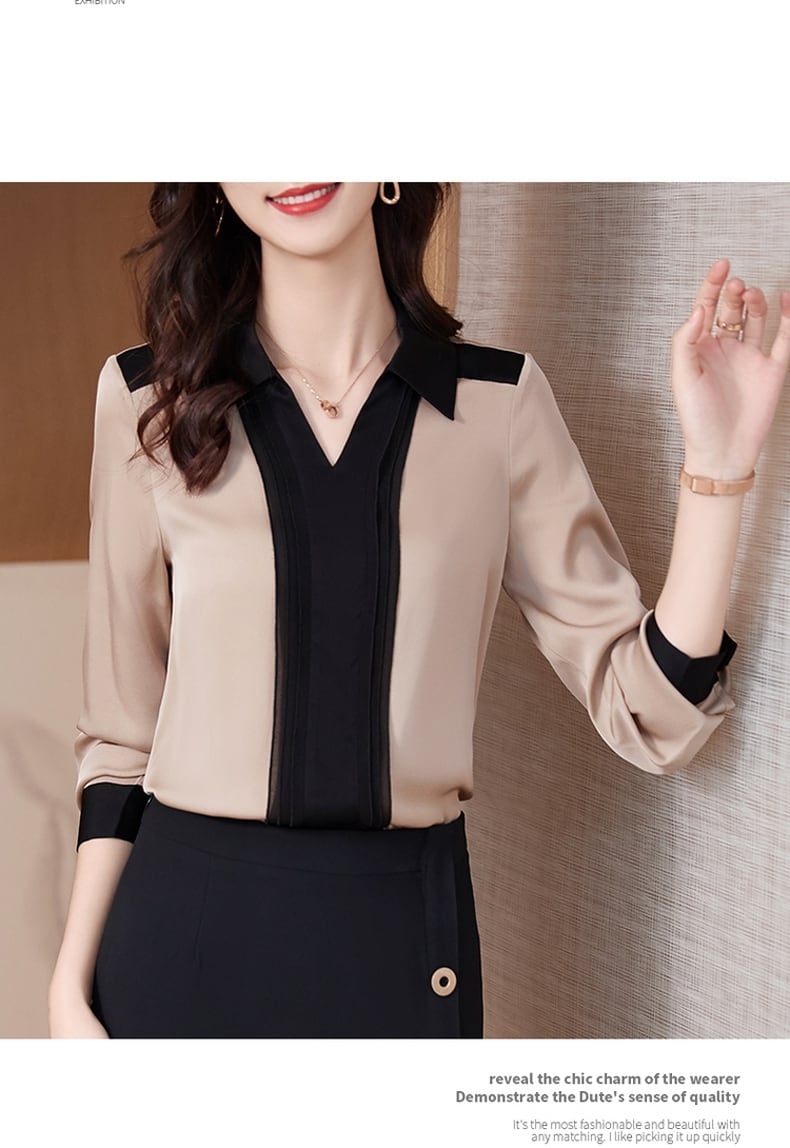 Vネックがきれいにデコルテを見せてくれるトップスブラウス。落ち感のあるシルエットで、大人女性特有の美しく上品な雰囲気を演出します。袖あり長袖なので、秋冬の季節にぴったり。どんなシーンにも使いやすい無地デザインなので、オフィスやビジネスシーン、プライベートなど、様々な場面で活躍してくれます。また、多彩なサイズ展開があるので、幅広い年齢層の方におすすめです。