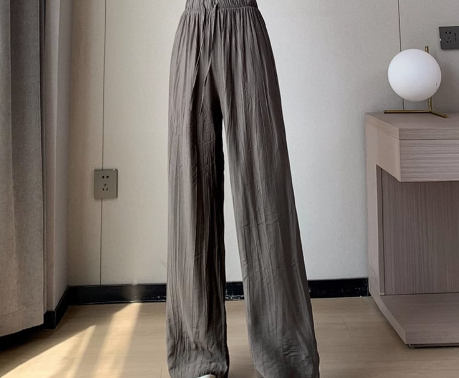 送料無料 ボトムス パンツ ワイドパンツ ストレートパンツ フレア ウエストゴム 薄手 シワ加工 かわいい 大人可愛い きれいめ シンプル カジュアル おしゃれ お洒落 アジアン エスニック エキゾチック 大人女子 こなれ感 ラフ ルーズ 個性的 クール 主役級 無地 夏 10代 20代