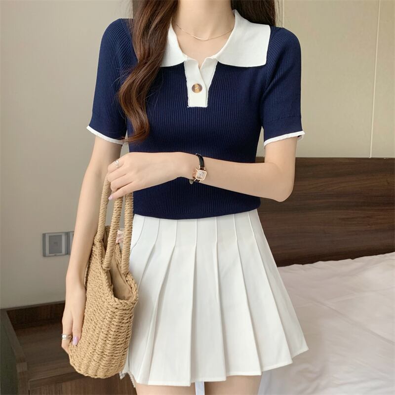 送料無料 トップス カットソー 袖あり 半袖 Vネック 襟付き リブ かわいい 大人可愛い きれいめ シンプル カジュアル 上品 おしゃれ お洒落 レトロ 大人女子 こなれ感 ラフ 無地 春 夏 10代 20代 30代 40代 レディース 女性用 ママ オフィス OL 通勤 学生 通学