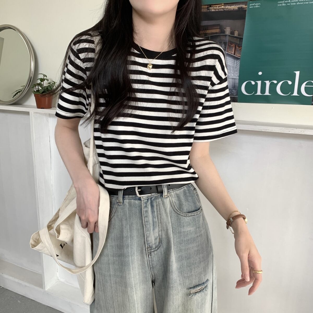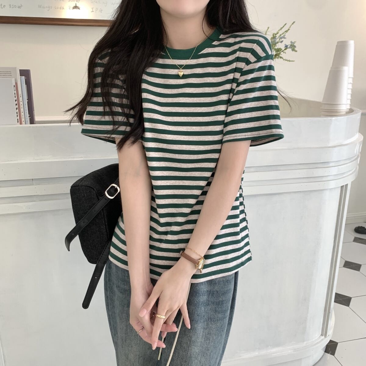 送料無料 トップス Tシャツ 袖あり 半袖 ラウンドネック かわいい 大人可愛い シンプル カジュアル おしゃれ お洒落 かっこいい 大人女子 こなれ感 ラフ ボーイッシュ 抜け感 柄 ボーダー 春 夏 10代 20代 30代 レディース 女性用 ママ 学生 通学 デート お出かけ