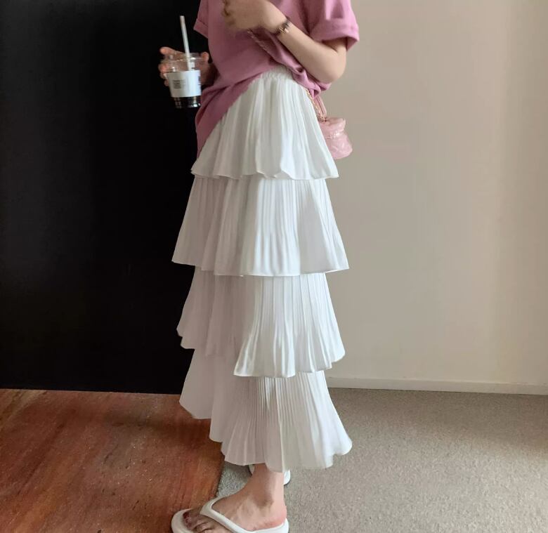こだわりのロングスカート。プリーツスカートなので、ふっくらとした立体感があって、美しいシルエットを作ります。