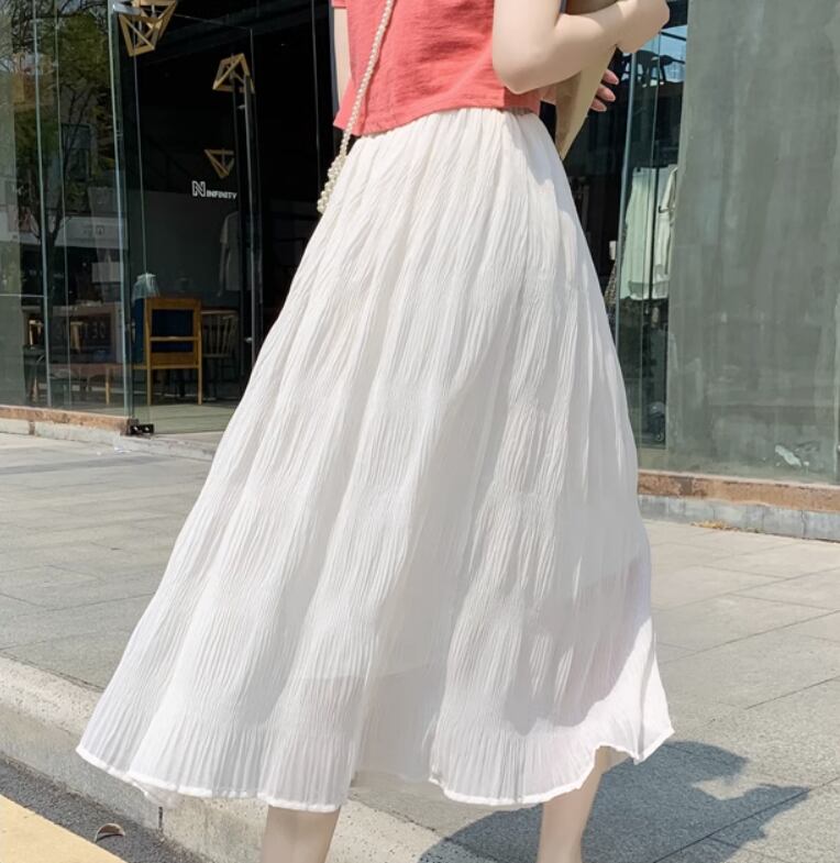 この春夏おすすめのロングスカートが登場しました。フレアスカートで女性らしいシルエットを作り出し、ロング丈で脚を長く見せます。ウエストはゴム仕様で、履くだけで楽ちんに着こなせます。