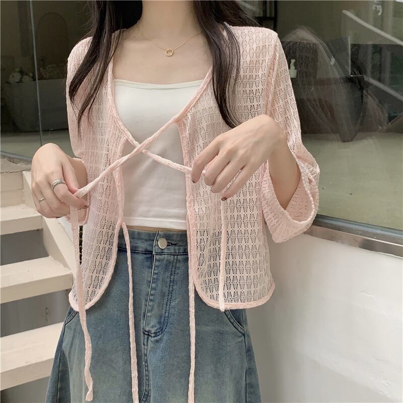 送料無料 トップス カーディガン 袖あり 長袖 レース リボン 前開き 透け感 シースルー かわいい 大人可愛い きれいめ シンプル カジュアル 大人 上品 おしゃれ お洒落 大人女子 こなれ感 無地 春 夏 10代 20代 30代 40代 レディース 女性用 ママ 学生 通学 デート