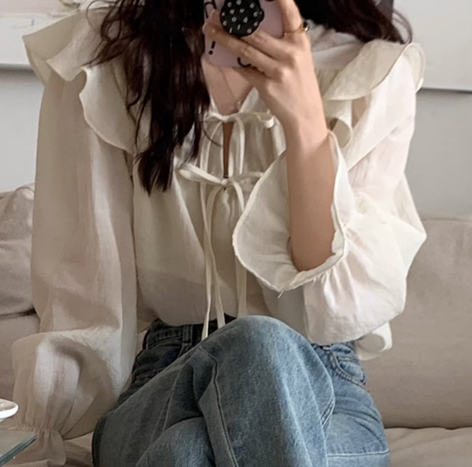 送料無料 トップス シャツ ブラウス カットソー 袖あり 長袖 フリル リボン かわいい 大人可愛い きれいめ シンプル カジュアル 大人 上品 おしゃれ お洒落 かっこいい レトロ 大人女子 こなれ感 ラフ ルーズ 個性的 クール モード系 主役級 無地 春 秋 10代 20代 30代