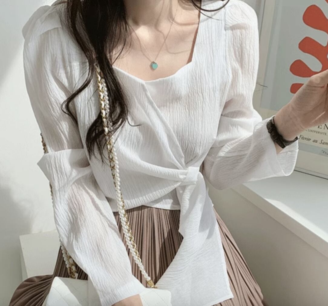 送料無料 トップス シャツ ブラウス カットソー 白トップス 袖あり 長袖 スクエアネック かわいい 大人可愛い きれいめ シンプル カジュアル 大人 上品 おしゃれ お洒落 かっこいい レトロ 大人女子 こなれ感 個性的 クール モード系 主役級 無地 春 秋 10代 20代 30代