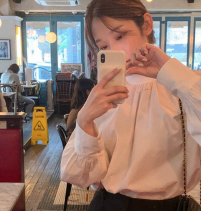 送料無料 トップス シャツ ブラウス カットソー 白シャツ 白トップス 袖あり 長袖 パフスリーブ かわいい 大人可愛い きれいめ シンプル カジュアル 上品 おしゃれ お洒落 かっこいい レトロ 大人女子 こなれ感 個性的 クール モード系 主役級 無地 春 秋 10代 20代 30代