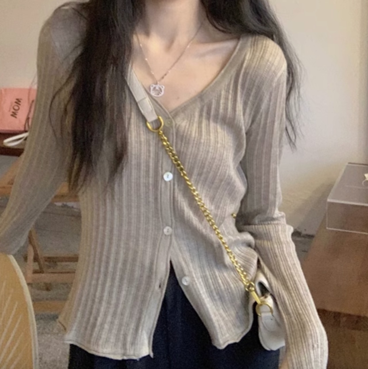 送料無料 レディース トップス ニット カーディガン 長袖 Vネック 無地 シンプル タイト 細身 大人可愛い きれいめ カジュアル 上品 おしゃれ 抜け感 リブ ガーリー フェミニン デイリー お出かけ オフィス カーキ ピンク グレー ブラック 送料無料