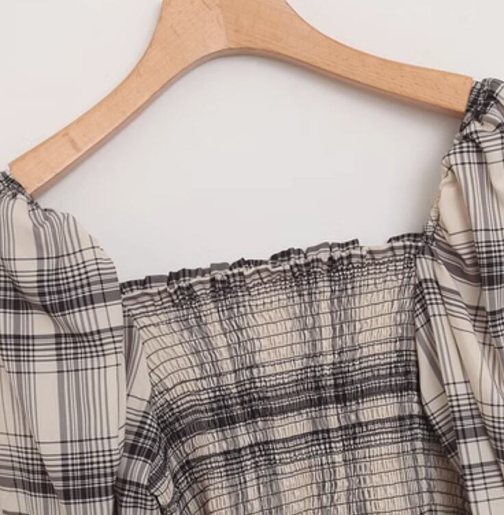送料無料 レディース トップス ブラウス 長袖 スクエアネック シャーリング バルーンスリーブ チェック 大人可愛い きれいめ キレカジ 上品 おしゃれ レトロ ガーリー フェミニン エレガント キュート アプリコット デイリー お出かけ デート 送料無料