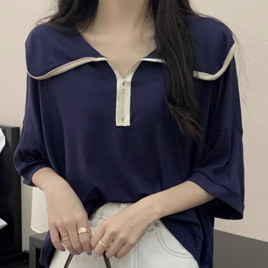 送料無料 レディース トップス シャツ 半袖 ジップ 無地 シンプル 大人可愛い きれいめ シンプル カジュアル ボーイッシュ おしゃれ かっこいい レトロ ゆったり ゆる オーバーサイズ ドロップショルダー こなれ感 抜け感 ラフ デイリー お出かけ 送料無料