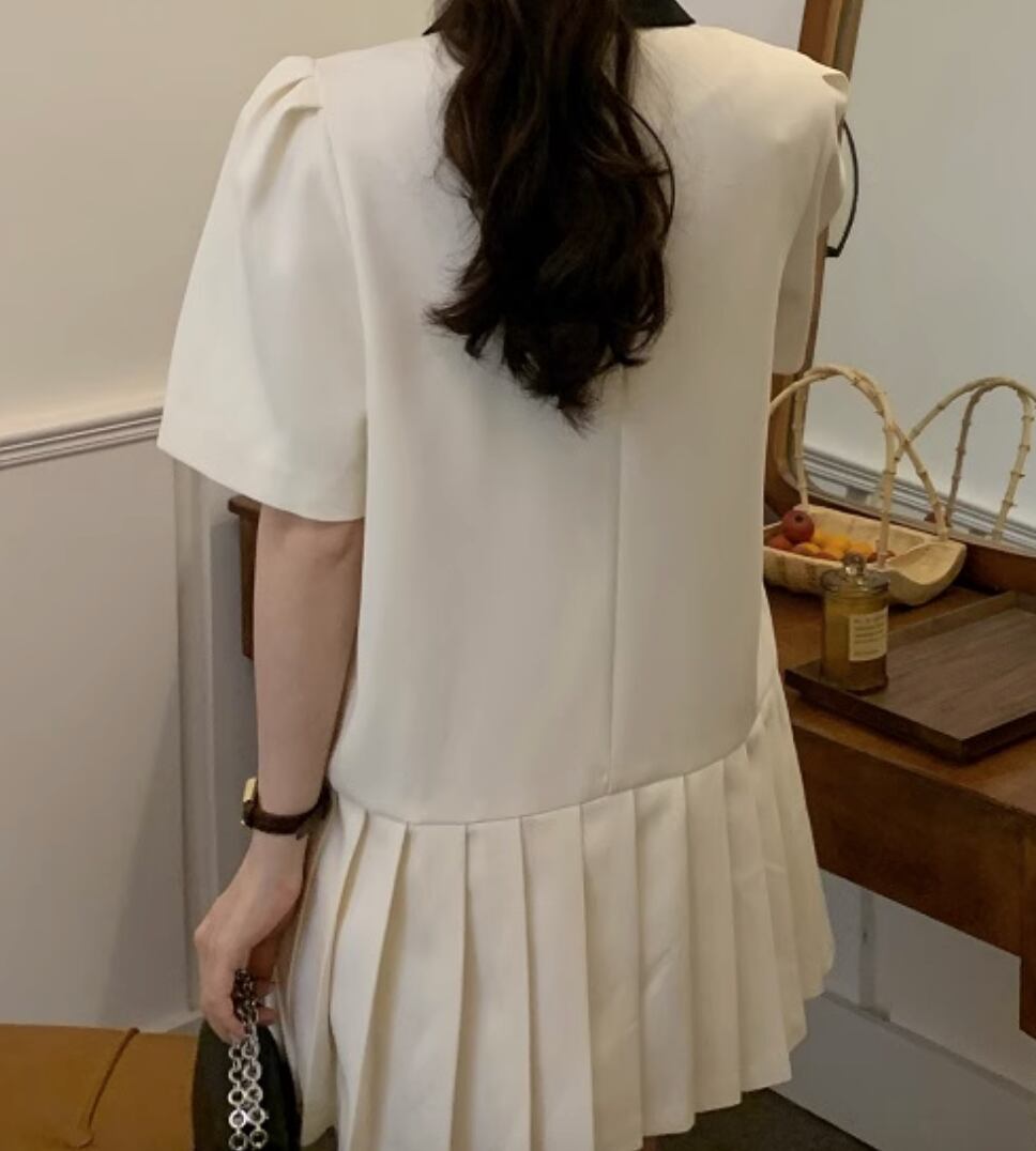 送料無料 レディース ワンピース ショート 膝上 ミニ 半袖 リボン 切り替え プリーツ 大人可愛い きれいめ 上品 おしゃれ レトロ こなれ感 ガーリー 個性的 フェミニン エレガント 主役級 存在感 ラブリー キュート デイリー お出かけ お呼ばれ 送料無料