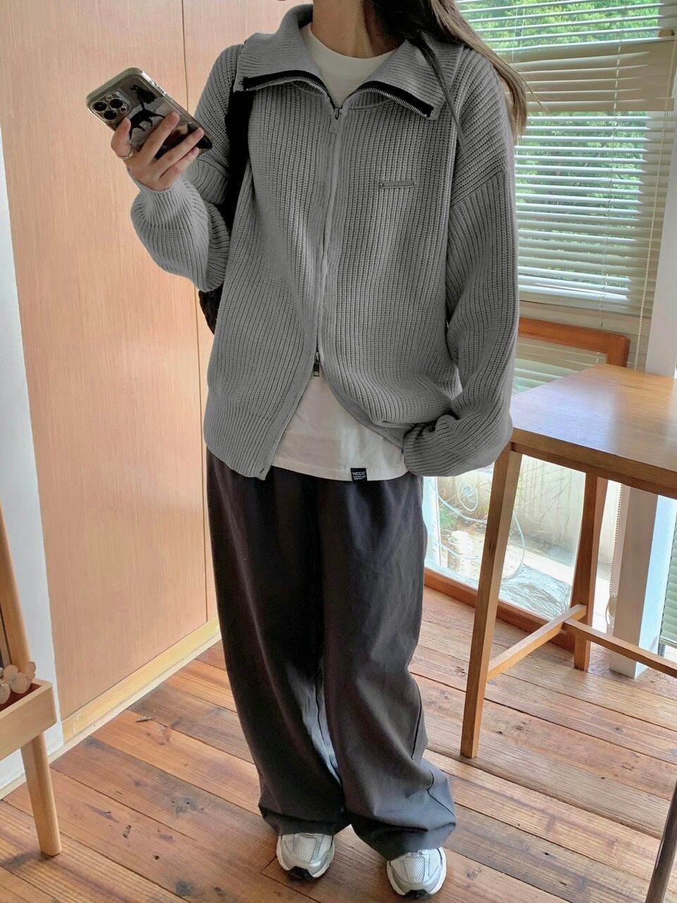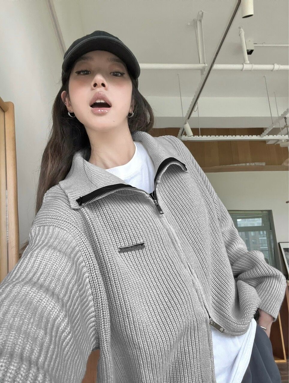 送料無料 ダブルジップ カーディガン ジップアップ レディース ドロップショルダー ニット 長袖 無地 シンプル ワンポイント 大人可愛い カジュアル おしゃれ レトロ こなれ感 抜け感 メンズライク ラフ ガーリー ゆったり ゆる 送料無料