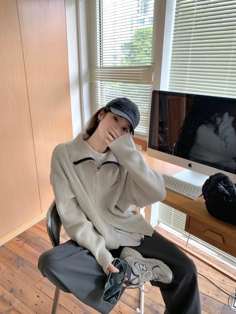 落ち着いた色味がありながらも、ワイドシルエットで可愛さも忘れていません。