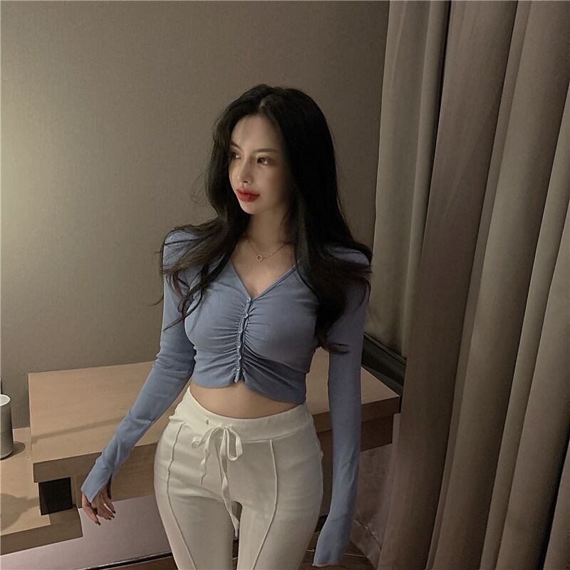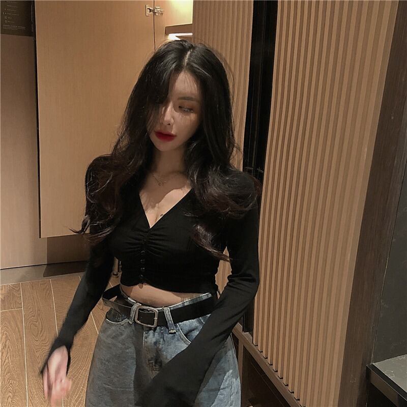 送料無料 トップス ロンT カットソー ショート 長袖 萌袖 ベルスリーブ Vネック 襟なし スリム 細身 ストリート 前開き 伸縮性 伸縮性 かわいい きれいめ シンプル カジュアル おしゃれ かっこいい こなれ感 ラフ マニッシュ ボーイッシュ スポーティー ルーズ 個性的 クール
