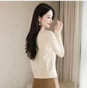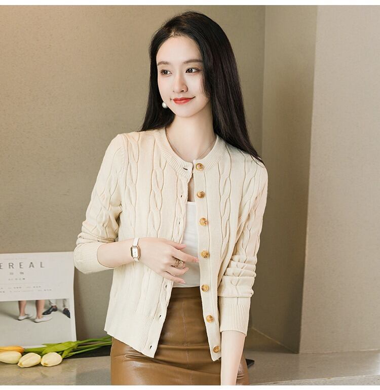 トップス ニット カーディガン 長袖 ラウンドネック クルーネック 襟なし スリム 細身 フェミニン 前開き ケーブルニット 伸縮性 ニット ケーブルニット かわいい 大人可愛い きれいめ シンプル カジュアル 上品 おしゃれ こなれ感 クール モード系 エレガント モダン