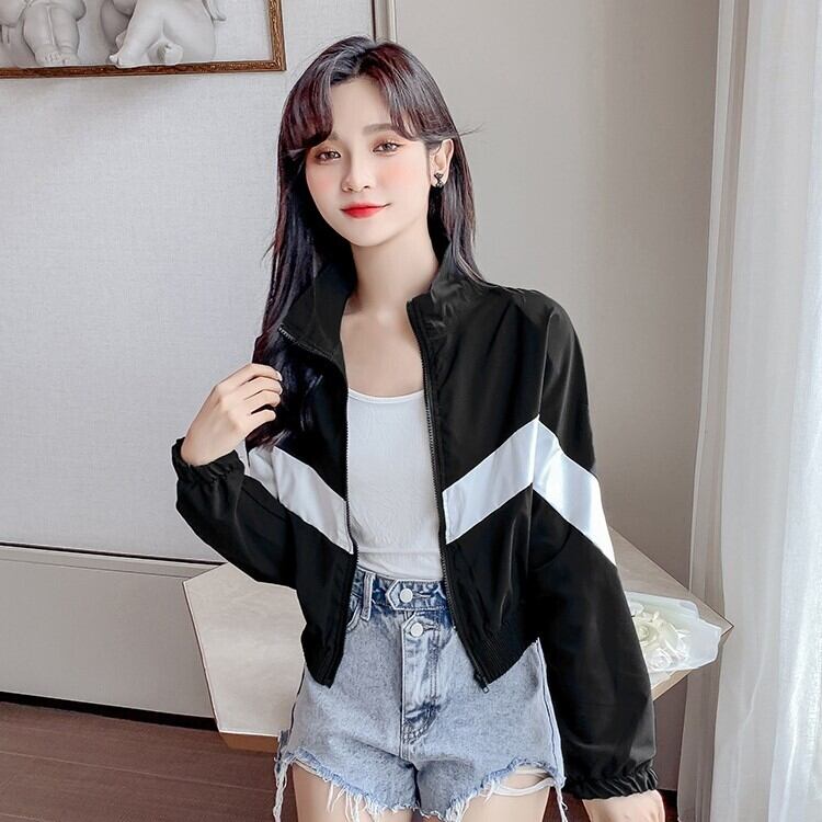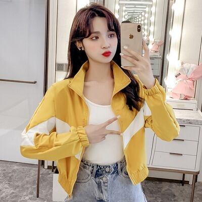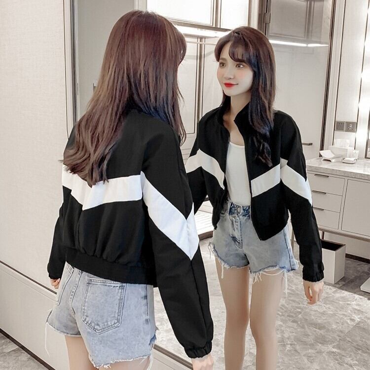 ジャケット ブルゾン 上着 ウィンドブレーカー ナイロンジャケット ショート 長袖 スタンドカラー スリム ストレート ストリート ファスナー ポケット 前開き バイカラー ナイロン かわいい シンプル カジュアル おしゃれ かっこいい レトロ こなれ感 ラフ マニッシュ