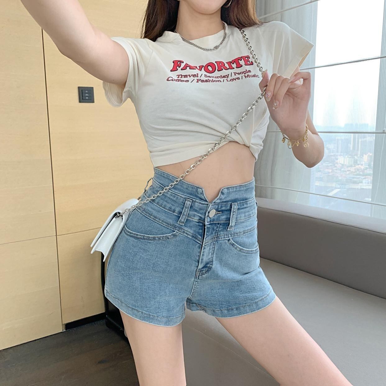 ストリート感溢れるデニムショートパンツが登場しました!スリムでストレートなシルエットが女性らしさを引き立てつつも、個性的な抜け感を演出。どんなスタイルにも合わせやすい万能アイテムです。