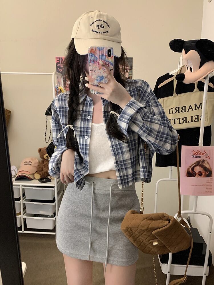 シンプルながらも存在感のあるシャツブラウスで、カジュアルからフェミニンまで幅広いスタイリングに対応します。ショート丈のデザインが美しいシルエットを作り出し、脚長効果も期待できます。