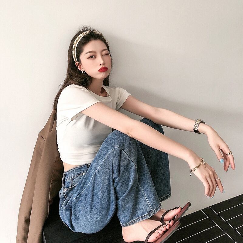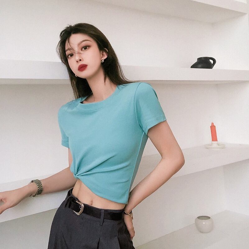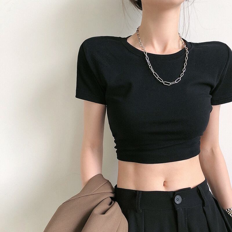 シンプルでありながら個性的なトップスが欲しい方におすすめの一枚です。マニッシュな雰囲気もありつつ、女性らしい抜け感も演出できる、クルーネックのショート丈カットソーです。