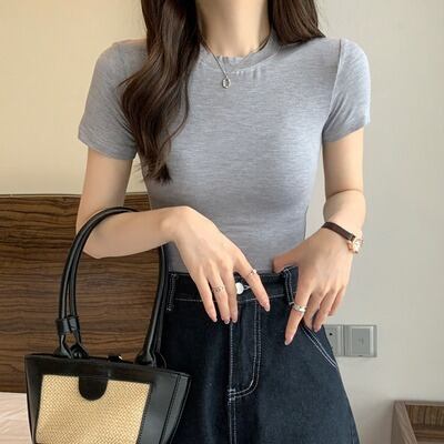 トップス カットソー Tシャツ 半袖 ラウンドネック クルーネック スリム 細身 コンサバ ストレッチ 伸縮性 かわいい 大人可愛い きれいめ シンプル カジュアル 上品 おしゃれ かっこいい こなれ感 ラフ メンズライク マニッシュ ボーイッシュ 個性的 クール モード系 存在感