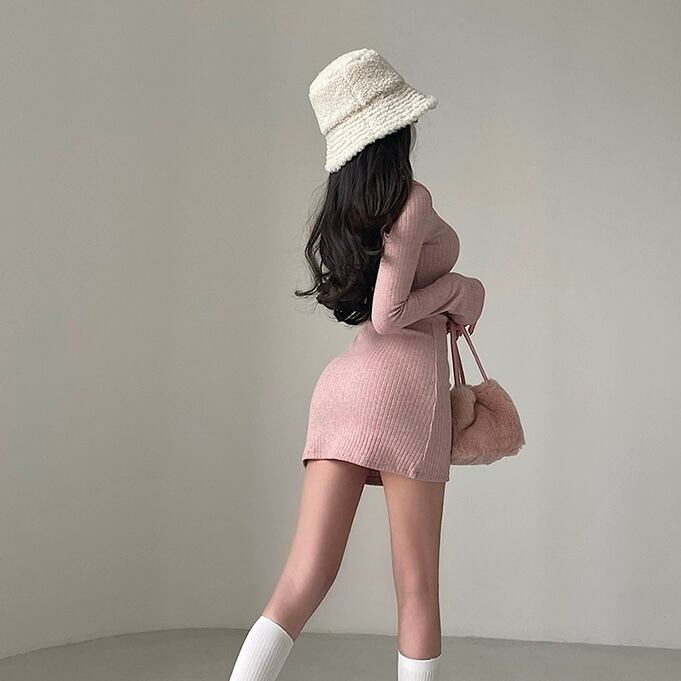 レディース ワンピース ニットワンピース ニット スクエアネック ショート丈 袖あり 長袖 プルオーバー スリム 細身 大人可愛い きれいめ シンプル カジュアル 大人 上品 お洒落 かっこいい レトロ 大人女子 こなれ感 ラフ クール モード系 モダン 主役級 存在感 とろみ感 抜け感 冬 10代 20代 30代 お出かけ 女子会 お泊まり ショッピング 休日 普段使い デイリー 韓国 韓国系 オルチャン ファッション コーデ スタイル トレンド 流行 S M ピンク カーキ グレー ブラウン ブラック