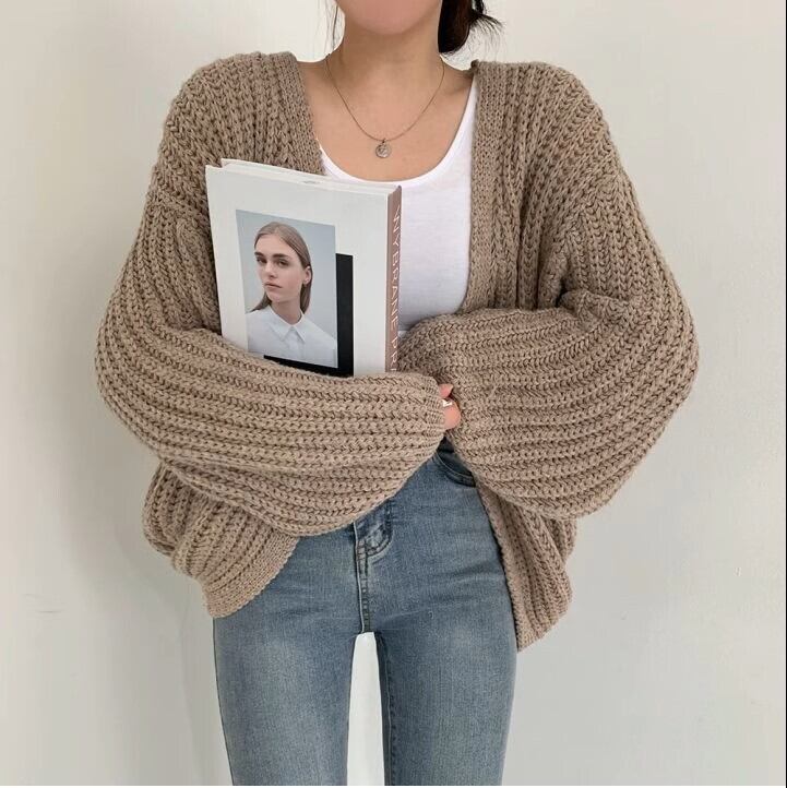 レディース ニット カーディガン ミドル 長袖 ボリューム袖 ランタンスリーブ ワイド ゆったり ざっくりニット かわいい 大人可愛い きれいめ シンプル カジュアル 上品 おしゃれ こなれ感 ラフ メンズライク ガーリー 無地 春 秋 冬 学生 学校 通学 デート お出かけ コーデ