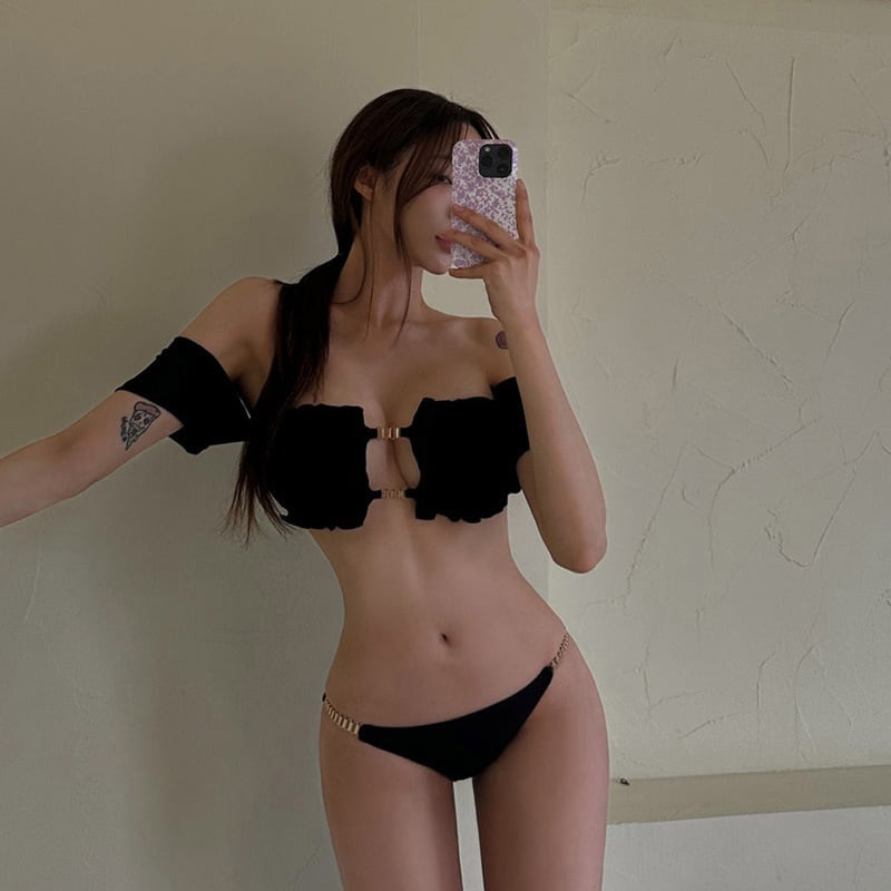 セクシーな海辺ルックにぴったりな、盛れる水着ビキニセット。華やかなオフショルダーやパフスリーブが、女性らしい魅力を引き立てます。パッド付きでバストラインも美しく整え、セパレートデザインでサイズ調整も自在。背中見せのバックシャンデザインで、セクシーで大人っぽいスタイルを演出します。