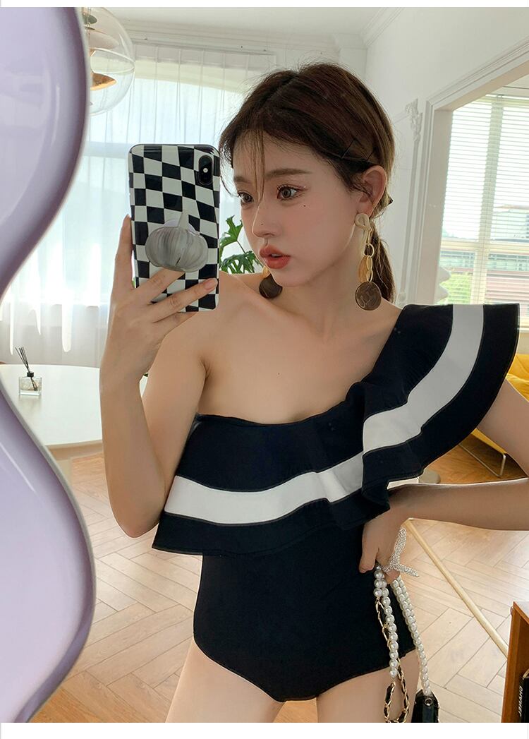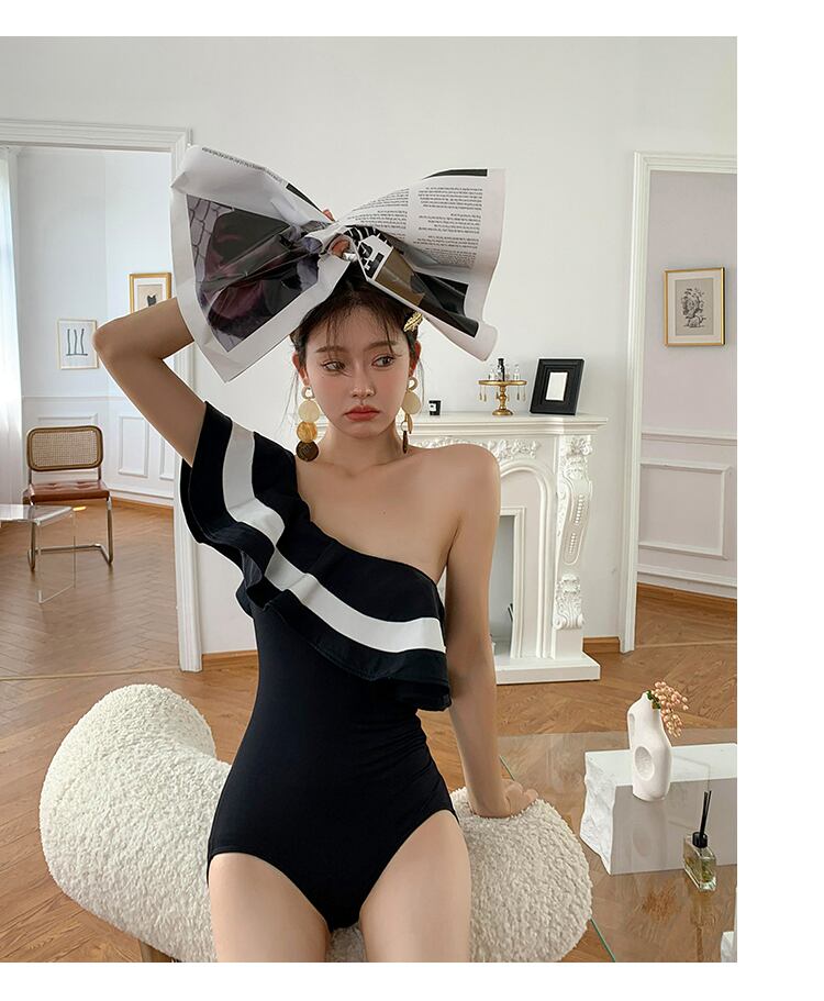 水着 レディース ワンピース 三角ビキニ ワンショル パッド付き フリル バックシャン ハイウエスト かわいい 大人可愛い シンプル ゴージャス 華やか 大人っぽい おしゃれ 主役級 存在感 ラブリー 個性的 クール モード系 スタイリッシュ かっこいい エキゾチック アジアン