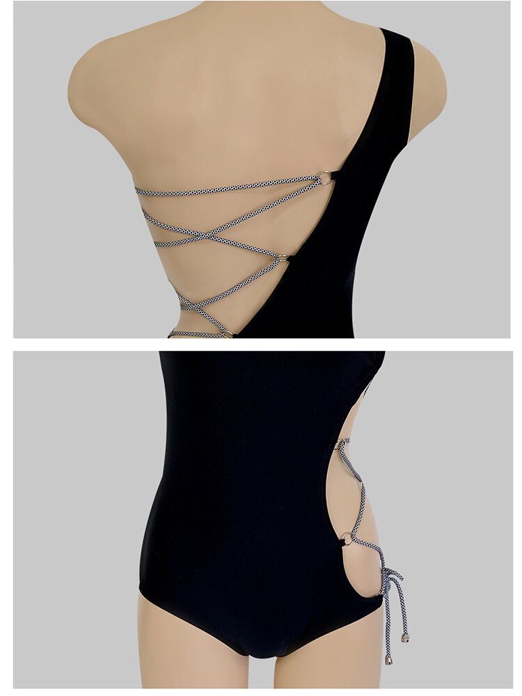 盛れる 水着 レディース 紐 ワンピース 三角ビキニ ワンショル パッド付き バックシャン 大人可愛い きれいめ ナチュラル ゴージャス 華やか 大人っぽい おしゃれ お洒落 主役級 存在感 個性的 クール モード系 スタイリッシュ かっこいい エスニック エキゾチック アジアン